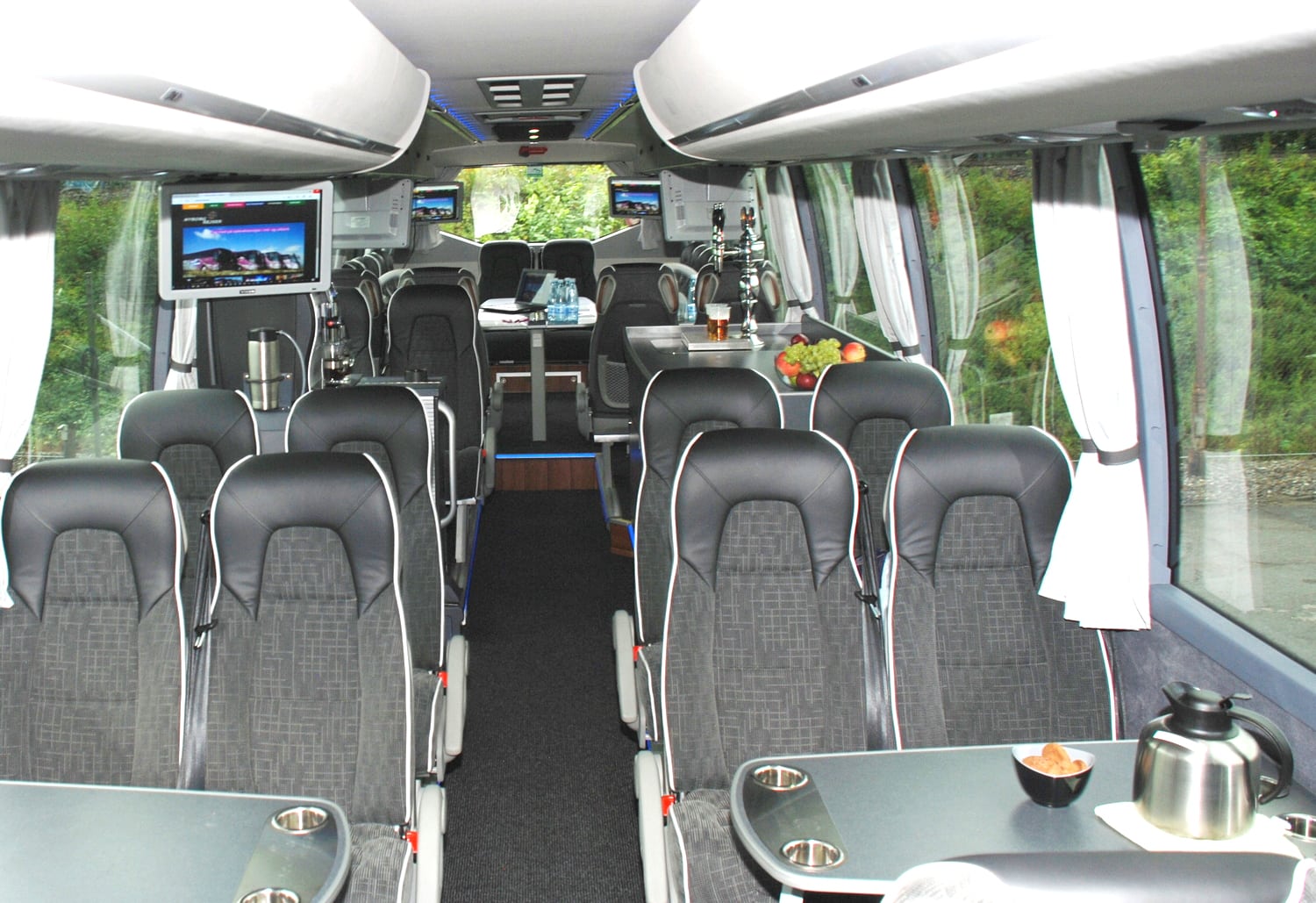 Som en af de få i Danmark tilbyder Nyborg Rejser specialindrettede VIP Konferencebusser til såvel arbejdsrelaterede brug som til de mere sociale arrangementer.